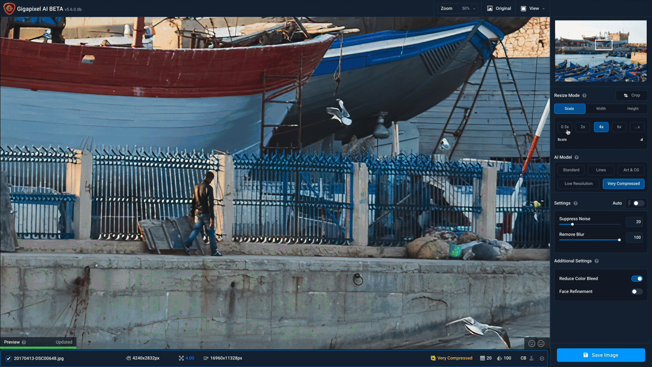 Improved color and tone processing for RAW and DNG files – When available, Gigapixel AI will apply a camera-specific color profile and provide improved overall color accuracy.