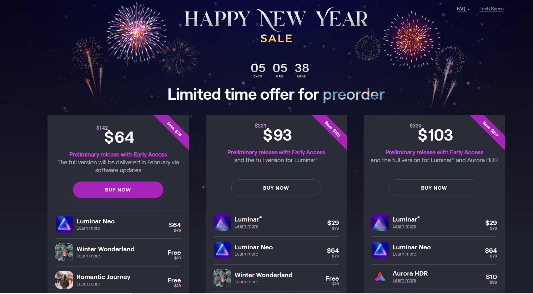 This is a limited time deal and is only good for the next 5 days (as of this writing). Also keep in mind that Luminar Neo is a preorder item and won’t be available until February. To learn more about the sales promotion, check out the Luminar AI 2022 New Years Sales Page.