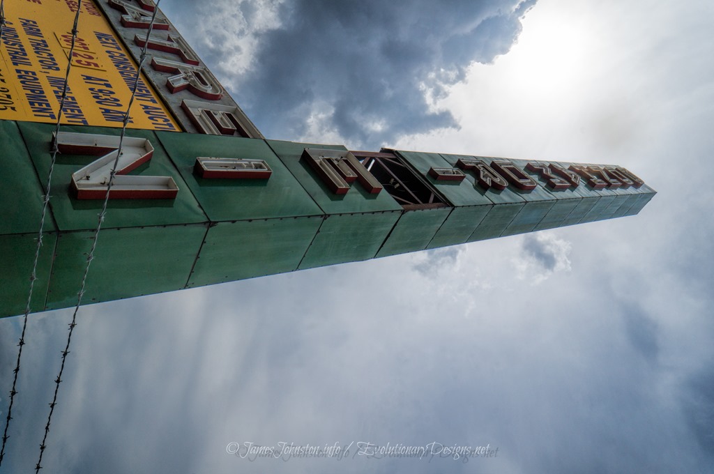 This beautiful vintage sign would look incredible all lit on this dark country Highway.